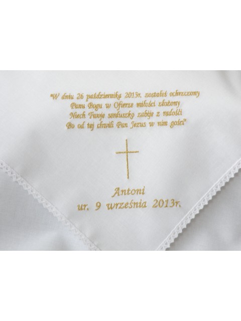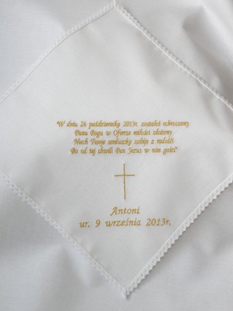 Tagi: szatka do chrztu, szatka z imieniem, haftowana szatka do chrztu, bawełniana szatka do chrztu, szatka na chrzest