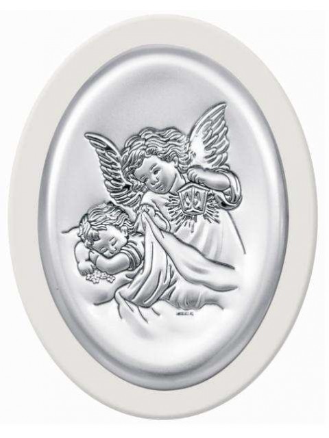 Srebrny owalny obrazek z  modlącym się Aniołkiem,  w rozmiarze 10x13 cm - włoskiej produkcji BELTRAMI.