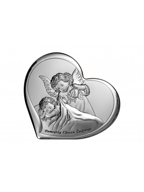 Srebrny Obrazek: Pamiątka Chrztu - Serduszko z Aniołem (11x9,6)