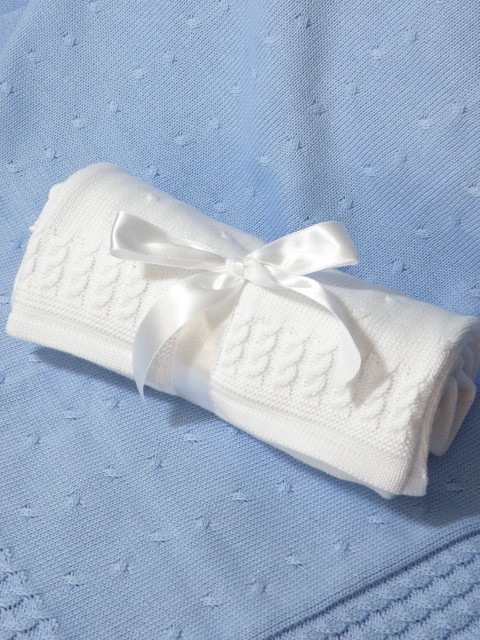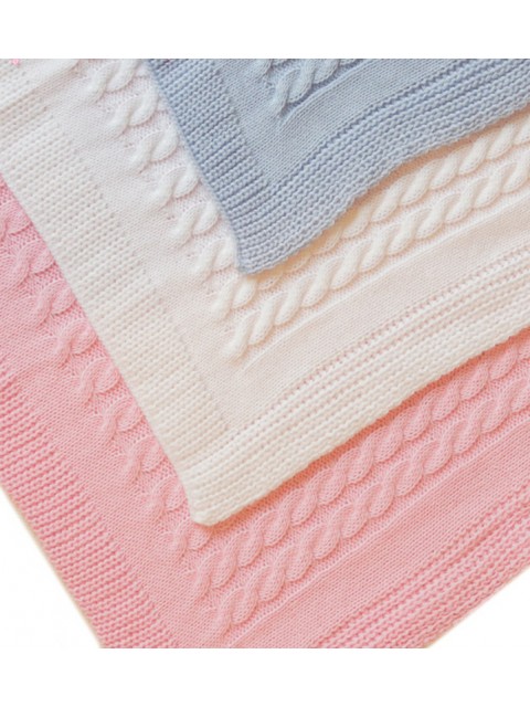 Miękki dzianinowy kocyk  "Warkoczyk" wykonany z wysokiej jakości bawełny.