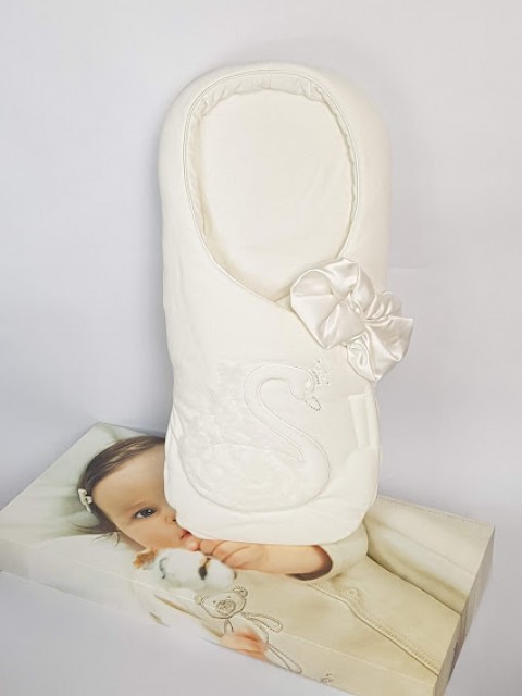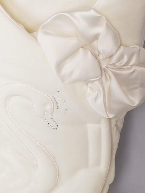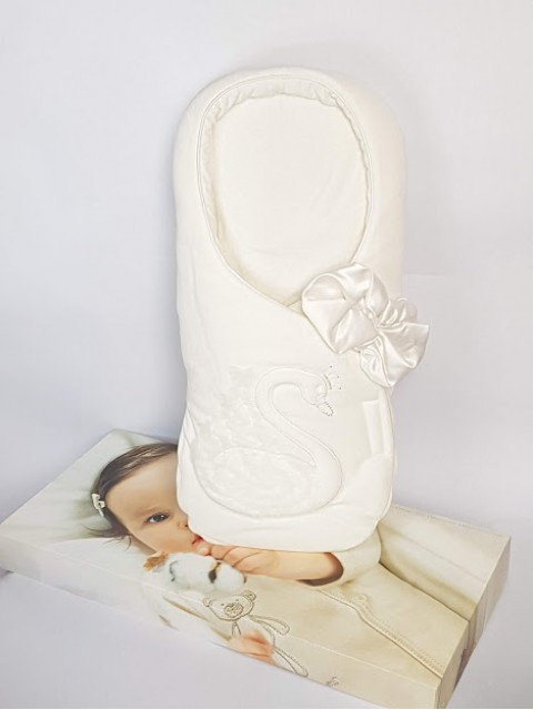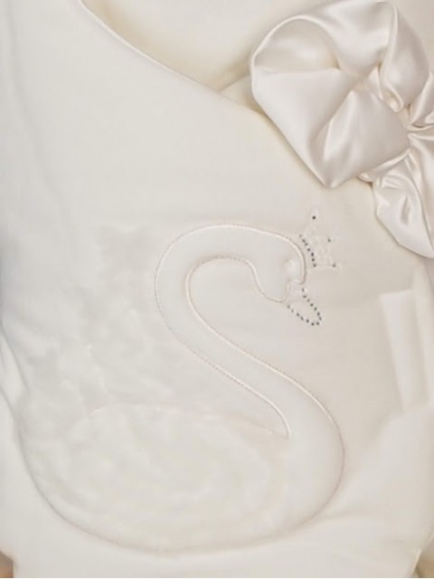 Na beciku została umieszczona tiulowa aplikacja z łabedziem oraz piękna satynowa kokarda.