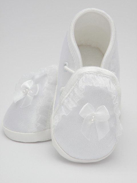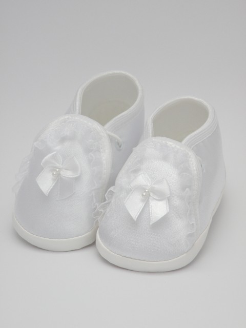 Atłasowe buciki do chrztu dla dziewczynki -białe