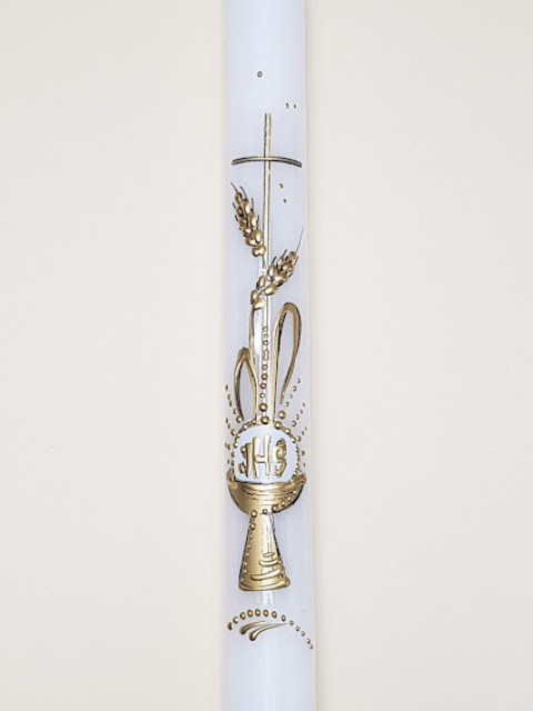 Tradycyjna świeca na I Komunię Świętą, wytwarzana tradycyjną metodą w krakowskiej wytwórni świec. Każda świeca jest ręcznie zdobiona, zapewniając unikalny charakter.