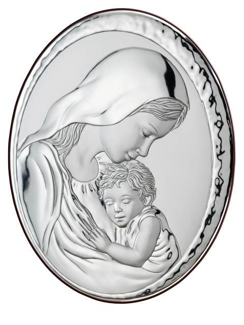 • Duży Srebrny Obrazek -Matka Boska z Dzieciątkiem 13x18cm